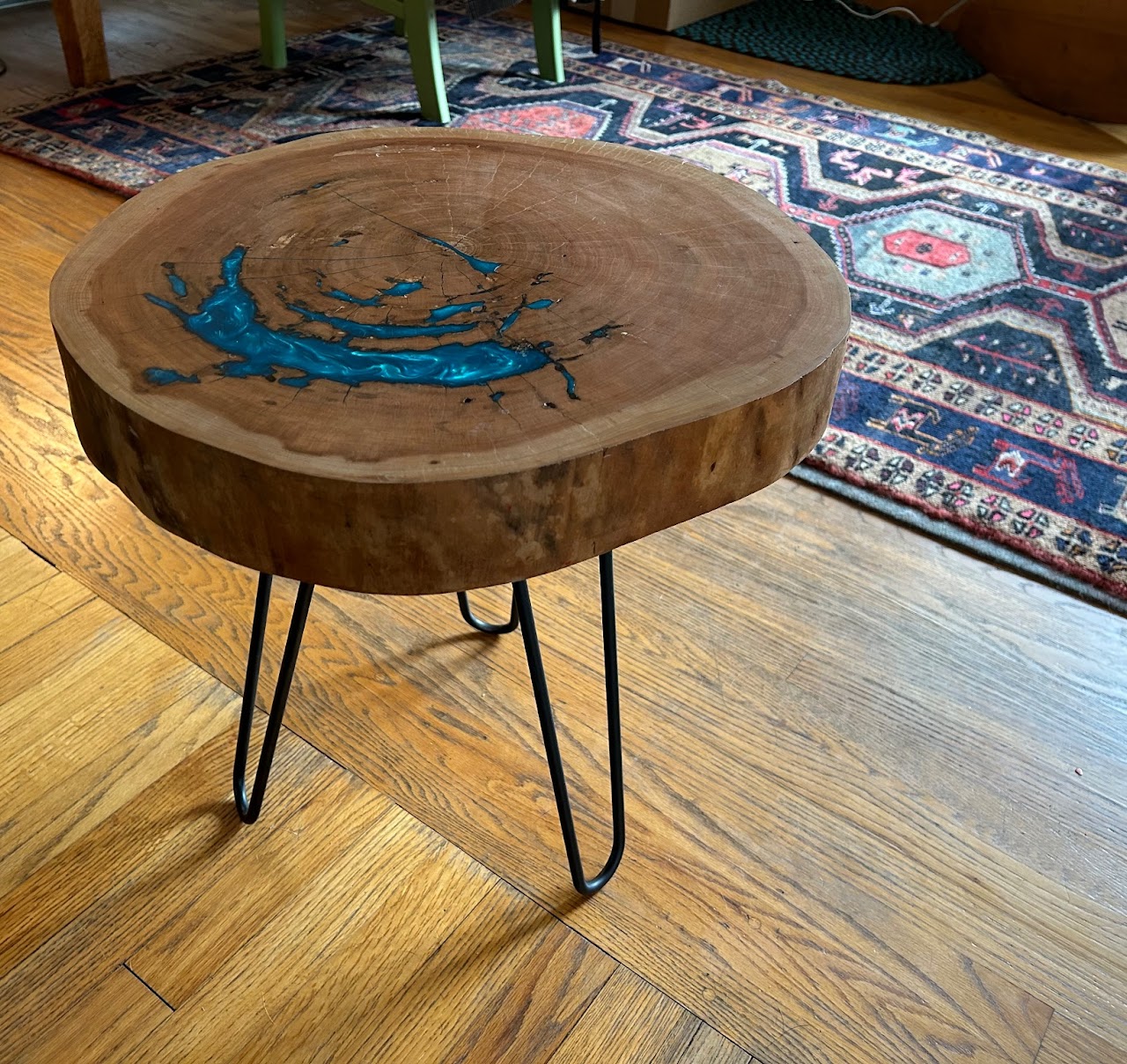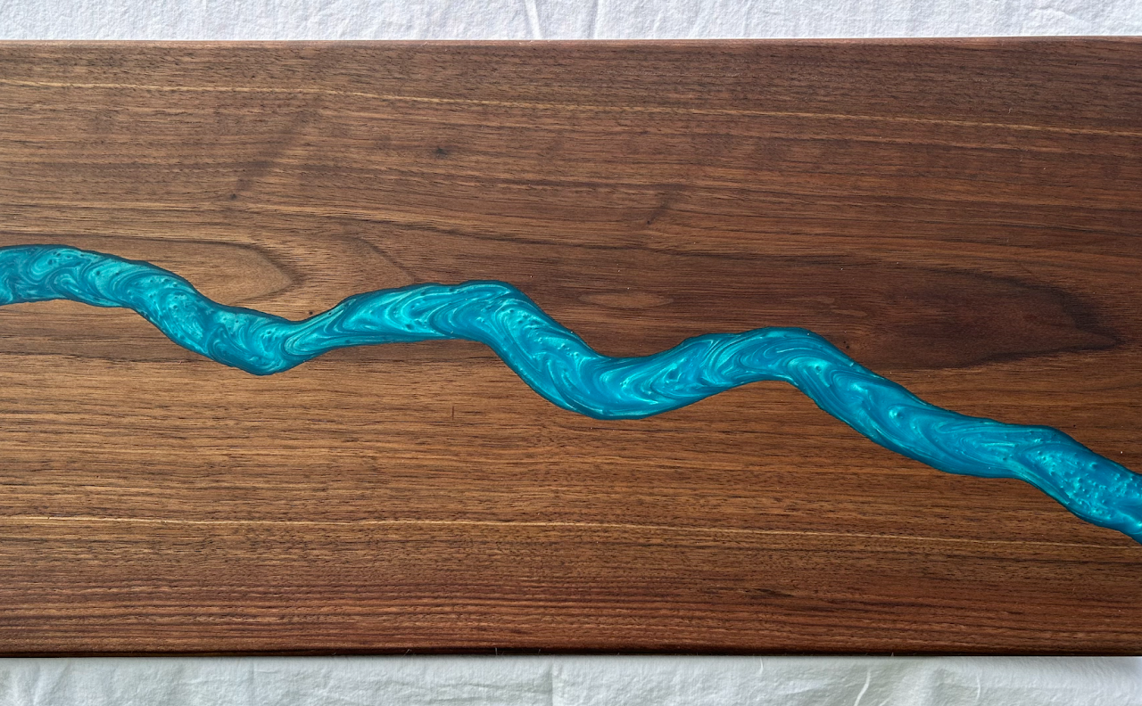 David is a retired engineer who took up woodworking about five years ago to keep busy and learn a new craft. Originally from the Boston area, David now lives in Southampton, MA. He specializes in handcrafted cutting boards, charcuterie boards, bowls, and end tables incorporating epoxy resins in various designs. He has displayed his work at Mountain View Farm and Makers Mart in Easthampton.